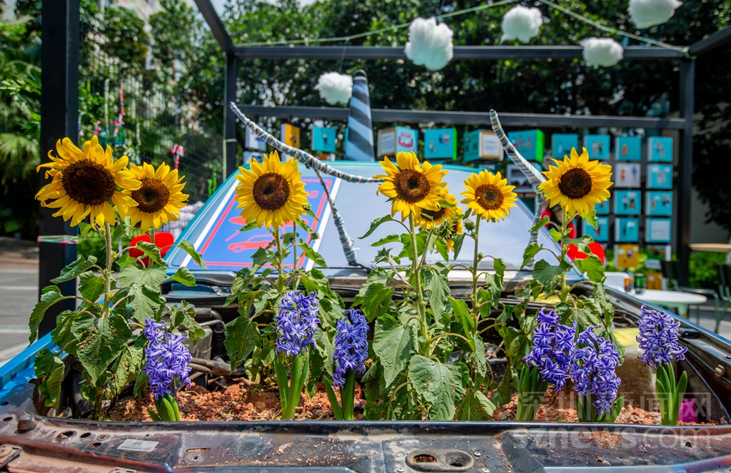 《一覽無(wú)Car》汽車引擎蓋空間變成向日葵微型花園(主辦方供圖)