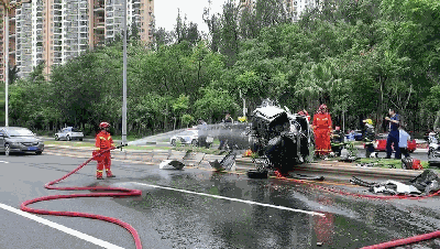 從觀眾拍攝的圖片可以看到,小車損壞嚴(yán)重,部分零部件散落一地,撞擊強(qiáng)度可想而知,據(jù)附近工人介紹,事發(fā)時(shí)現(xiàn)場(chǎng)傳來(lái)刺耳的剎車聲。