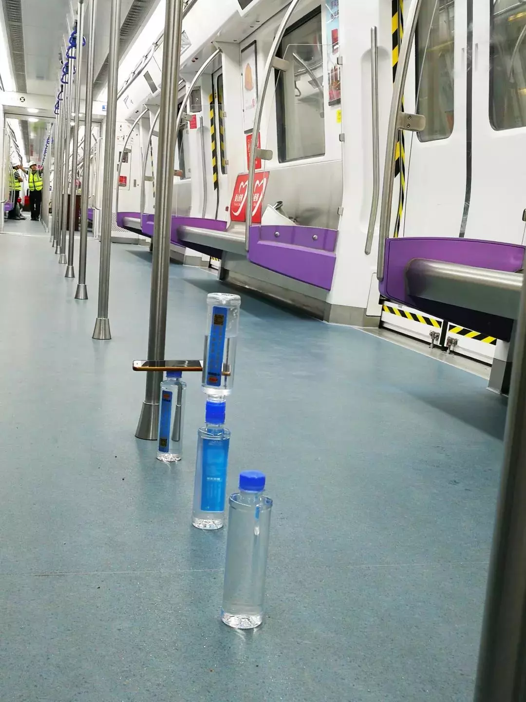 ▲列車運(yùn)行平穩(wěn),倒立的瓶裝水不倒