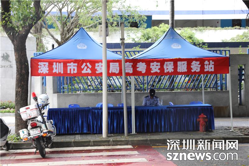 在深圳實驗中學中學部考點外,深圳市公安局設(shè)置有高考安保服務(wù)站