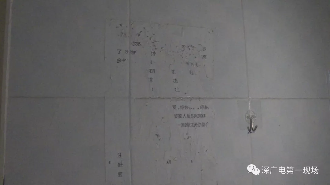 ▲賈女士家門墻上,男子張貼侮辱性文字告示,已被賈女士清除