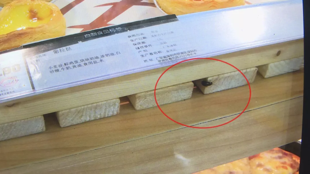 記者在柜前觀察了約10分鐘,發(fā)現(xiàn)一些小蟑螂已在柜里開(kāi)起了派對(duì),當(dāng)時(shí)僅鏡頭所能記錄下來(lái)的,就有4只!有些在柜子邊緣游走,有些則直接竄上貨架,和這些糕點(diǎn)親密接觸。