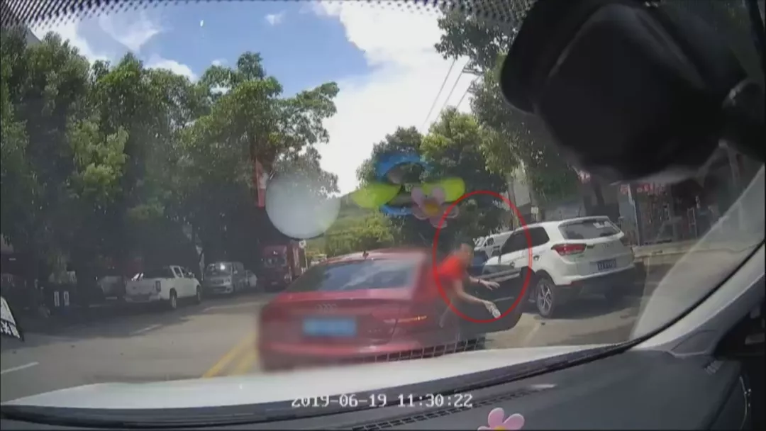 這幾個(gè)人不分青紅皂白對(duì)著戴先生的車(chē)輛一頓“拳打腳踢”!