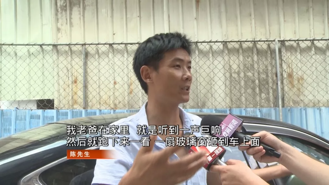 在現(xiàn)場,與陳先生同住一棟樓的梁先生告訴他,玻璃窗是從四樓掉落下來的,先是砸中了自己的車窗,然后在落地時剮蹭到陳先生的車輛。