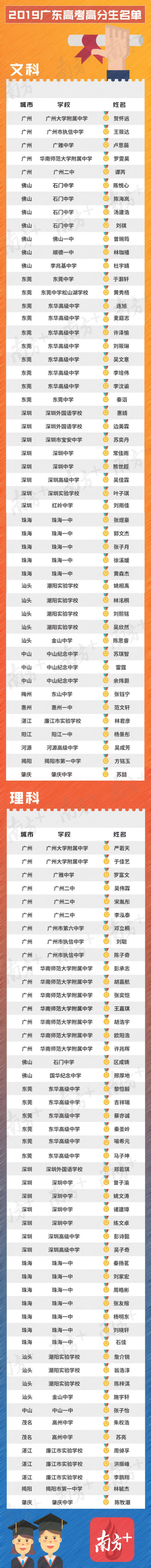 這些高分考生花落誰家?據(jù)統(tǒng)計,今年高考文理科前50名考生來自廣東15個地市的33所學(xué)校,其中珠三角地區(qū)除江門外,其他地市均有高分考生進入“100人名單”,地區(qū)分布更加均衡。