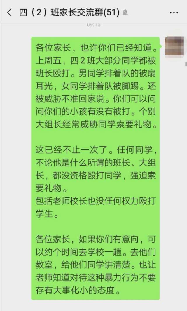 本月25日,龍崗區(qū)吉華街道華龍學(xué)校四(2)班一家長(zhǎng)反映,其女兒班上大部分學(xué)生,上周五都因“不聽(tīng)話(huà)”遭到該班班長(zhǎng)的毆打,30多人排著隊(duì)被“拳打腳踢”,“男生被扇耳光,女生被腳踢”,且情況不止發(fā)生過(guò)一次。事件引起社會(huì)的普遍關(guān)注。