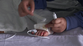 小小的父母正在幫孩子換藥