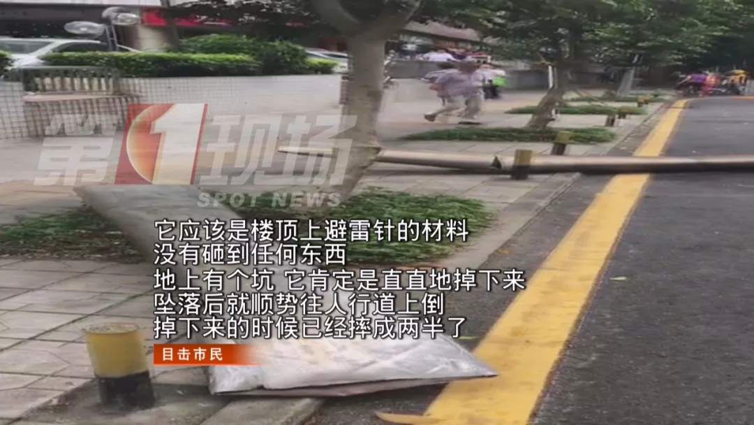 據(jù)目擊者介紹,在羅湖帝豪金融大廈附近,一根建筑鋼筋突然從高空墜落,砸在了路邊,連水泥地面都被鋼筋戳穿一個(gè)洞。