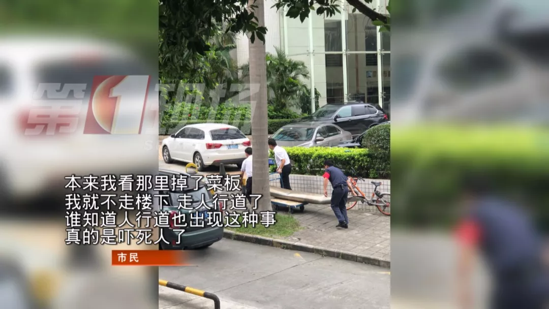 而且,這已經(jīng)不是第一起高空墜物事件了。前不久,一塊砧板就從某戶人家陽臺墜落到地面,所幸只是擦傷了一位路人。