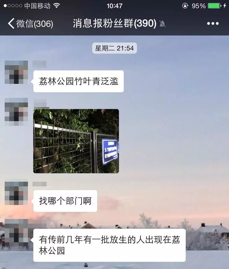 ▲消息報粉絲在群里報料,荔林公園有蛇出沒。