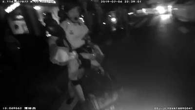 小哥裝作若無其事地玩手機,白衣男子瞟了他一眼,并沒有起疑。在路過一個治安崗?fù)r,小哥向值守的巡防員說明情況后,繼續(xù)跟在白衣男子身后。