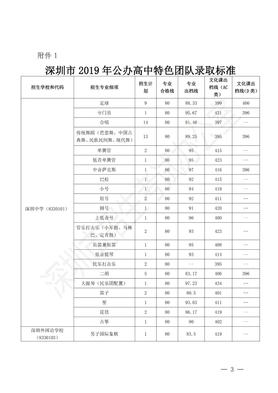 深圳市2019年公辦高中特色團(tuán)隊錄取標(biāo)準(zhǔn)