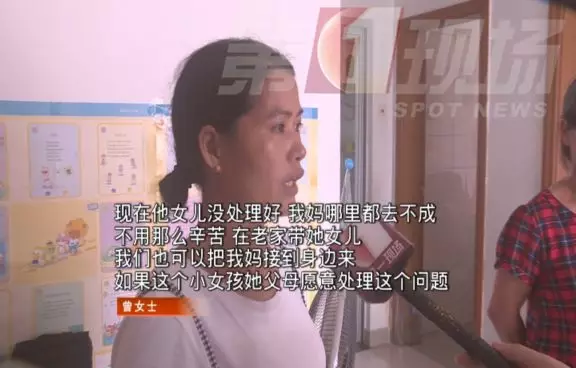 圖里紅格子衣服的,是曾女士的媽媽袁女士。此前小姑娘一直隨袁女士一起生活,前天老人把孩子帶到曾女士家里。