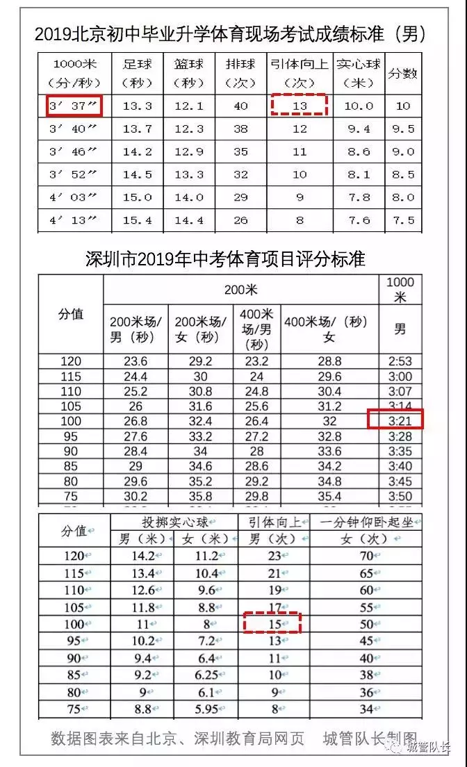 體育成績,男子1000米跑,北京滿分3分37秒,上海滿分3分34秒,廣州滿分3分45秒,而深圳滿分3分21秒,且深圳中考體育占總分比更高。意味著,如果后面跟著一只大老虎,深圳的孩子要比北京的孩子跑快16秒才能不被老虎吃掉。其他項目基本上對深圳的孩子要求更高,比如引體向上,深圳孩子滿分15個,北京孩子滿分13個,上海孩子滿分11個。網(wǎng)友:憑什么咱的力氣要更大……