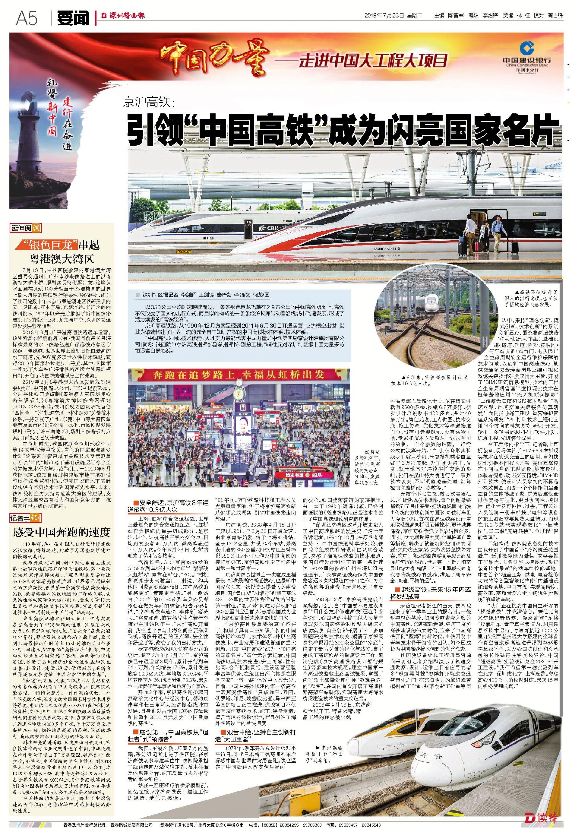 乘坐高鐵馳騁在祖國大地上,記者實實在在感受到了中國奔跑的速度,民族復(fù)興的力量。以京滬高鐵為代表,“復(fù)興號”在崇山峻嶺中穿行,帶動沿線交通格局全面升級,北京到上海最快運行時間由10小時縮短至4個多小時;構(gòu)建活力四射的“高鐵經(jīng)濟”長廊,中國兩大經(jīng)濟圈之間架起了客流、物流等的快速通道,拉動了區(qū)域經(jīng)濟社會快速發(fā)展和民生改善;其設(shè)計、建設(shè)、運營、管理經(jīng)驗,不斷為世界高鐵發(fā)展貢獻“中國方案”“中國智慧”。