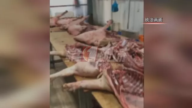 血跡斑斑的墻壁和地面、簡單組裝的加工臺、一扇扇切割好的豬肉就這樣隨意堆放在臺面以及地上。