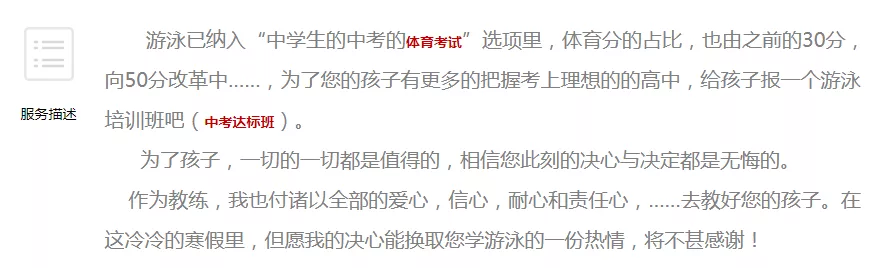 小編了解到,目前的游泳報(bào)考生大多是從小在校外自費(fèi)訓(xùn)練,多年來需要花費(fèi)高額學(xué)費(fèi)及投入大量精力。盡管新的中考體育考試辦法尚未確定,但不少商業(yè)培訓(xùn)機(jī)構(gòu)已嗅到商機(jī),迅速做出了反應(yīng)。深圳幾家大型培訓(xùn)機(jī)構(gòu)網(wǎng)站上,針對不同年級適用的中考項(xiàng)目一一列出,最新的《征求意見稿》也被貼在了2022年中考部分,并強(qiáng)調(diào)對擬新增的項(xiàng)目同樣提供相關(guān)服務(wù)。小編網(wǎng)上隨手一搜,到處都是游泳培訓(xùn)班的廣告: