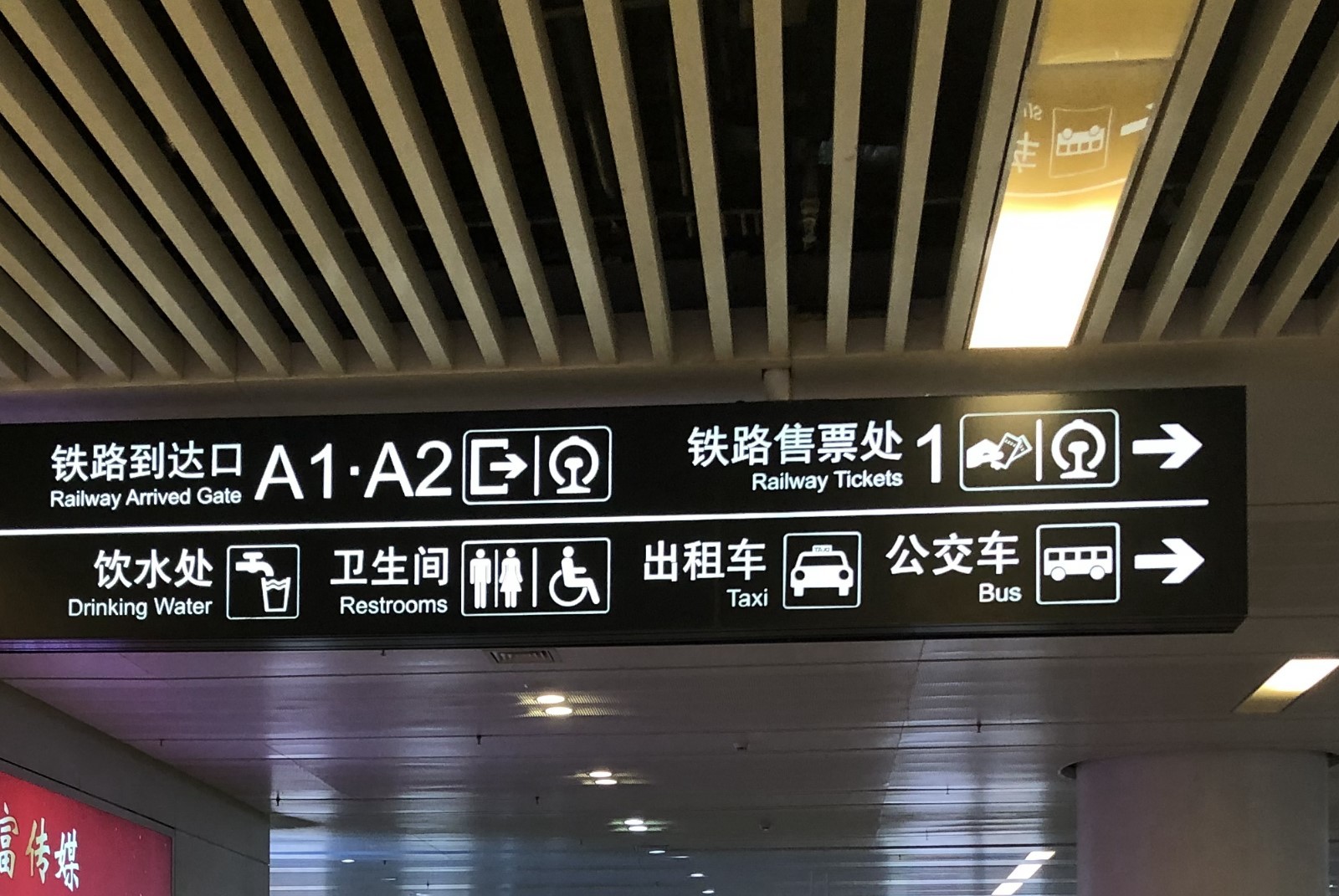 ▲同時記者留意到,在高鐵站沿路的洗手間指引標(biāo)識牌上,僅標(biāo)注了男女洗手間和殘疾人洗手間的標(biāo)識,卻沒有第三方洗手間的指引標(biāo)識,只有在殘疾人洗手間的門上才能看到“一家三口手拉手”的圖案標(biāo)識,不方便有需要的市民“按圖索驥”。且該洗手間位置處于男洗手間入口通道內(nèi),如果女性帶孩子進(jìn)入使用,不免有些尷尬。