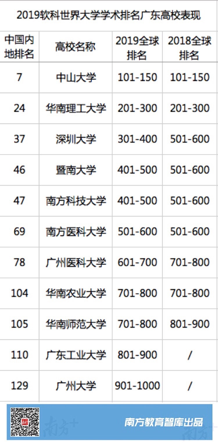 廣東高校共有11所上榜,上榜數(shù)量僅次于江蘇(20所)和北京(19所),排名第3。中山大學(xué)位居全球101-150位,中國內(nèi)地第7名;華南理工大學(xué)全球201-300位,位列中國內(nèi)地第24位。此次進(jìn)步最大的是深圳大學(xué),從去年全球501-600位飆升至301-400位,全國排名第37名。進(jìn)步的還有暨南大學(xué)和南方科技大學(xué),升至全球401-500位。