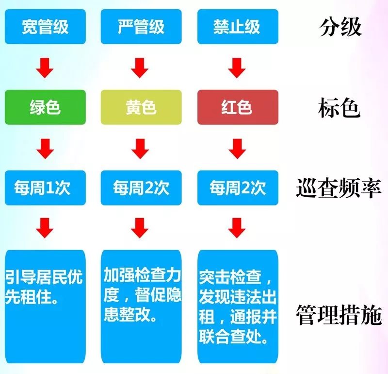 各街道在本轄區(qū)內(nèi)全面落實(shí)出租屋分類(lèi)分級(jí)管理,區(qū)工作領(lǐng)導(dǎo)小組在各街道完成后開(kāi)展全面驗(yàn)收。