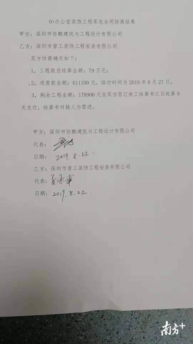 原標題:深圳一公司完工大半年近200萬裝修費余款未結,街道辦介入?yún)f(xié)調(diào)