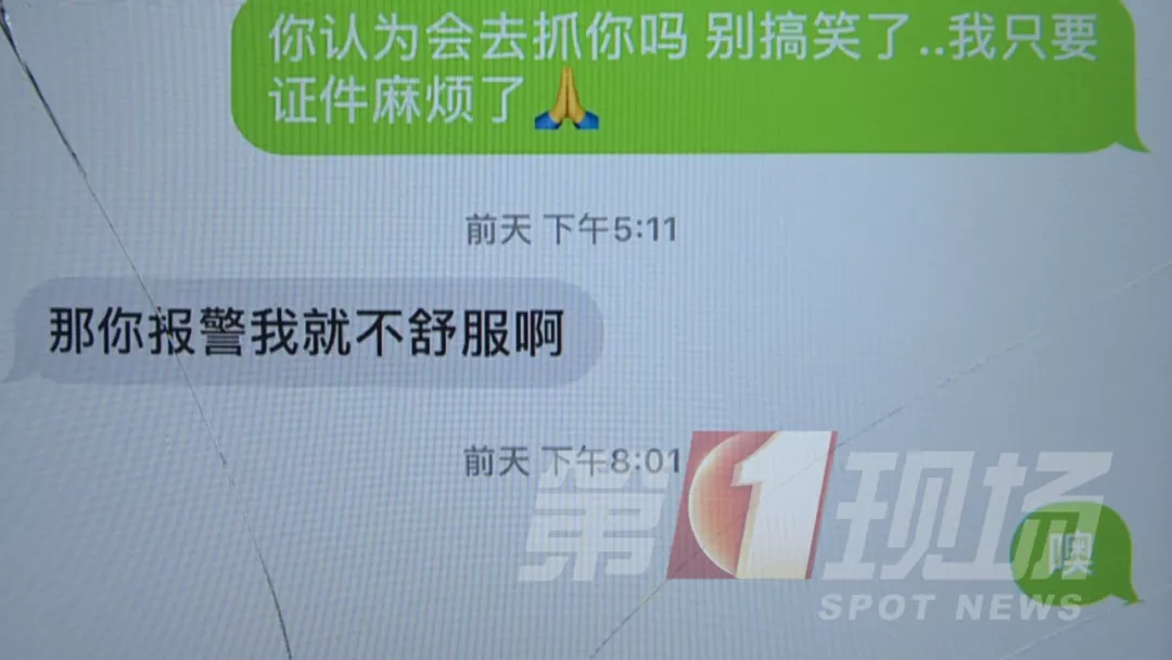 陳先生事主:我就說錢你拿去,把證件還給我行不行,他居然說:“你報警我就不舒服了”,難道我報警還有錯嗎?真的太猖狂了。