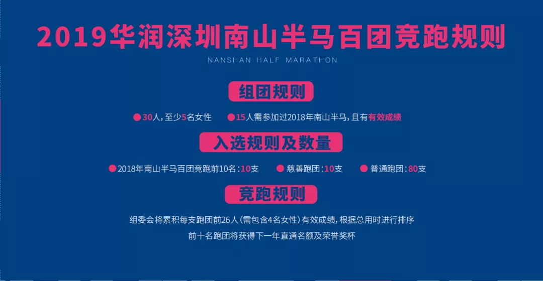 注:30名跑團(tuán)團(tuán)員中,至少有15人及以上人數(shù)參加過2018華潤深圳南山半程馬拉松賽,否則不予以排名入選資格