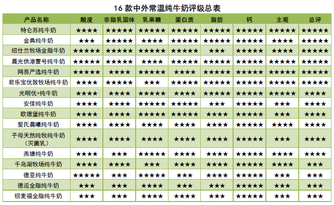 最終,經(jīng)綜合評(píng)價(jià),此次中外常溫純牛奶比較試驗(yàn)中,共6款常溫純牛奶獲五星評(píng)價(jià),五款國(guó)產(chǎn):蒙牛特侖蘇、伊利金典、君樂寶優(yōu)質(zhì)牧場(chǎng)、晨光供港壹號(hào)和網(wǎng)易嚴(yán)選純牛奶;一款進(jìn)口:紐仕蘭牧場(chǎng)全脂牛奶。