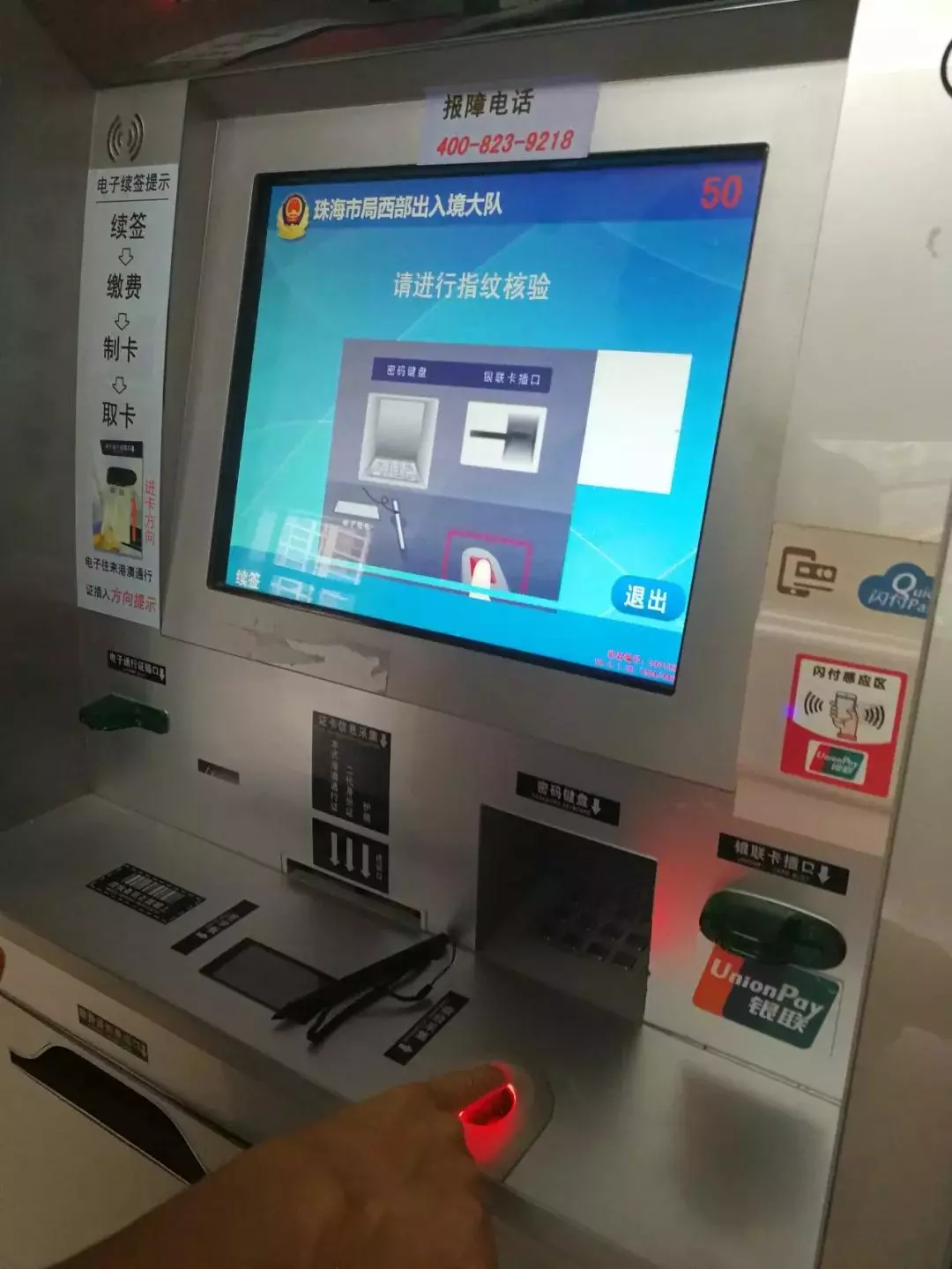 對(duì)于無(wú)法識(shí)別指紋的老人和小孩,接待大廳還設(shè)有可“人臉識(shí)別”自助辦理簽注的機(jī)器,符合條件的市民一般可以通過(guò)人臉識(shí)別進(jìn)行身份驗(yàn)證。