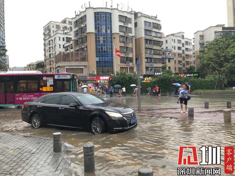 暴雨過后,在福田區(qū)蓮花路上開車如行舟。