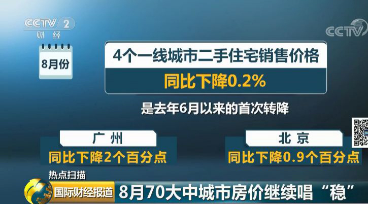 值得一提的是,代表一線城市房?jī)r(jià)風(fēng)向標(biāo)的二手住宅銷(xiāo)售價(jià)格同比下降0.2%,是去年6月以來(lái)的首次轉(zhuǎn)降,其中,廣州二手住宅銷(xiāo)售價(jià)格同比下降2個(gè)百分點(diǎn),北京下降0.9個(gè)百分點(diǎn)。