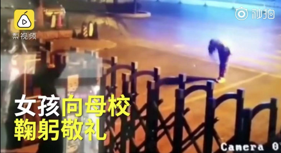 突然停下對著學(xué)校端正敬禮,