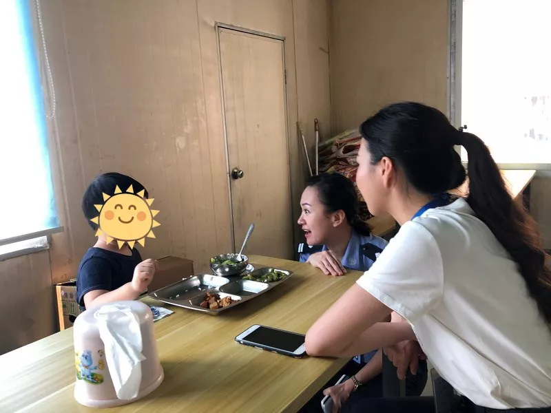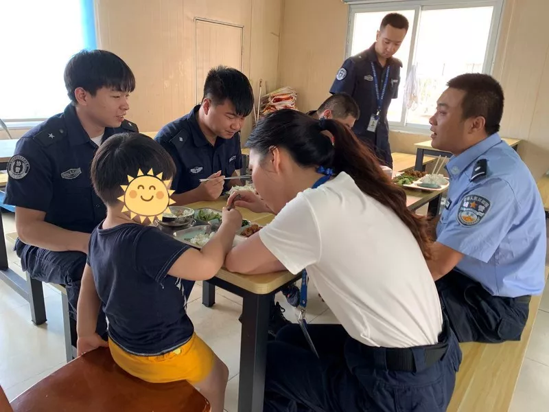 正值午飯時(shí)分,小男孩說(shuō)餓了,想吃肉。郭飛教導(dǎo)員立即到飯?zhí)媒淮鷰煾堤酎c(diǎn)嫩的青菜,做點(diǎn)軟一些的肉給小男孩吃。并安排輔警王野、輔助人員黃以敏等人繼續(xù)陪同就餐和安撫。
