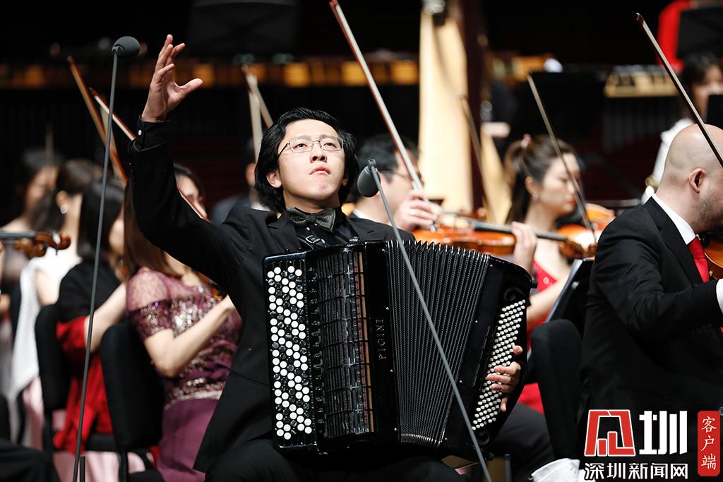 中國青年巴揚手風(fēng)琴演奏家毛俊澔在彩排現(xiàn)場演奏。