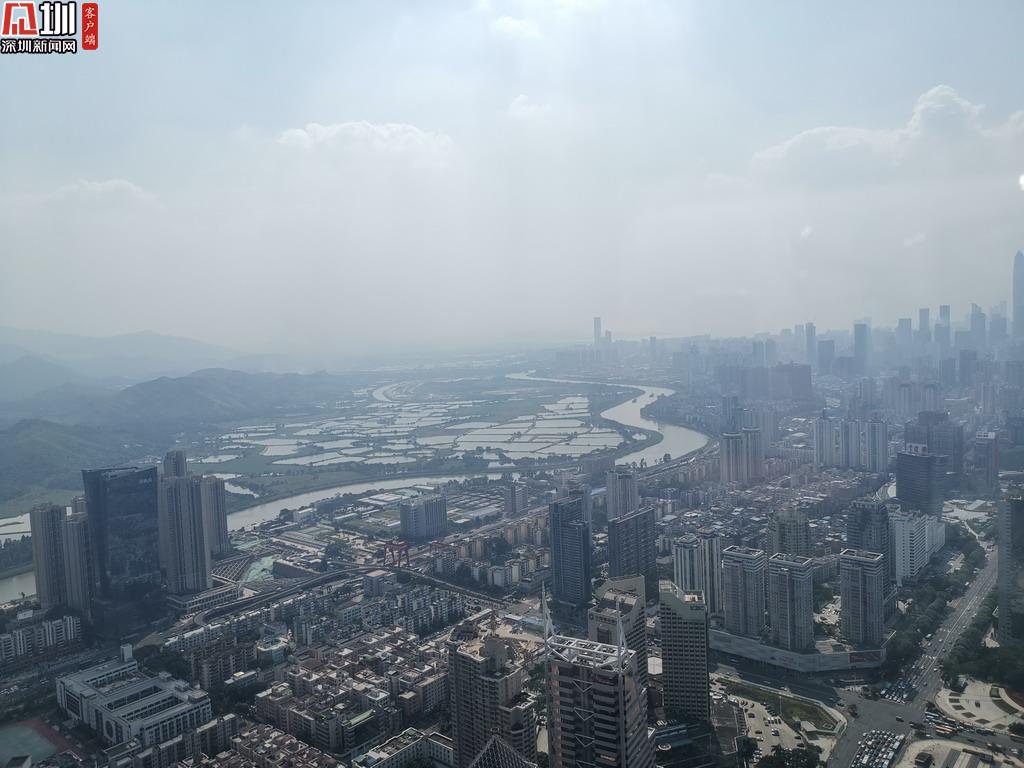 站在地王觀光?深港之窗,俯瞰深圳。