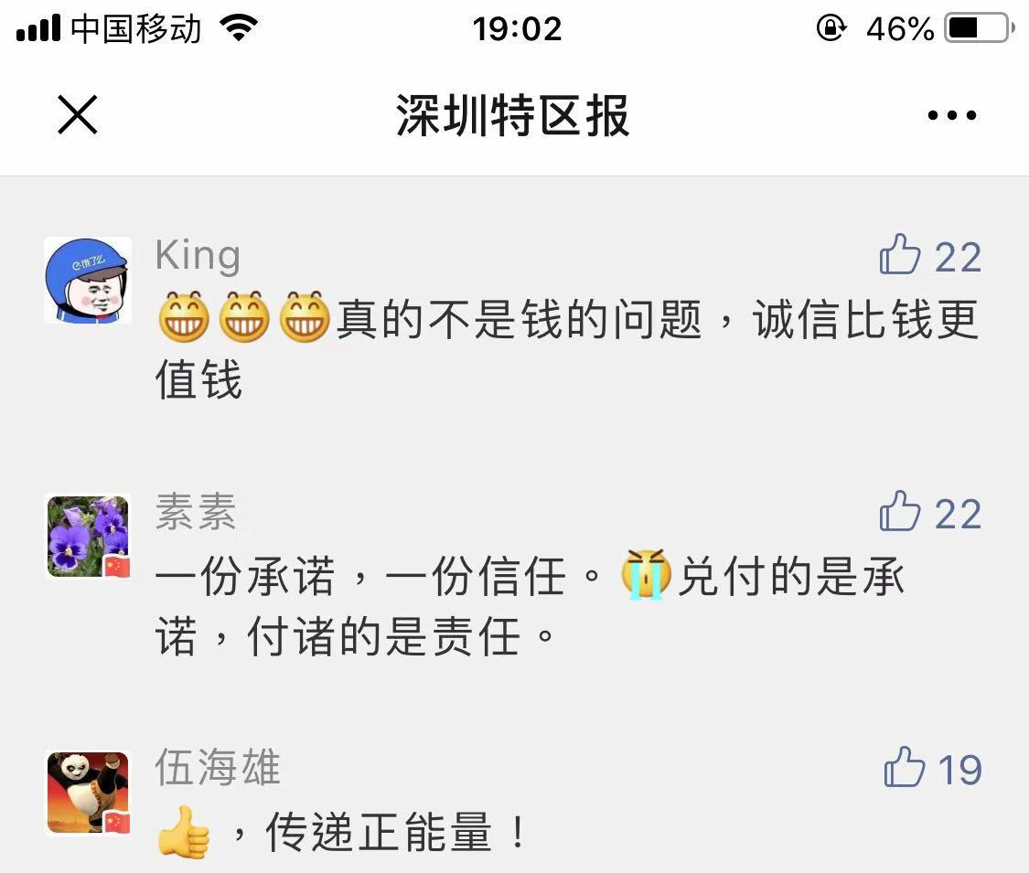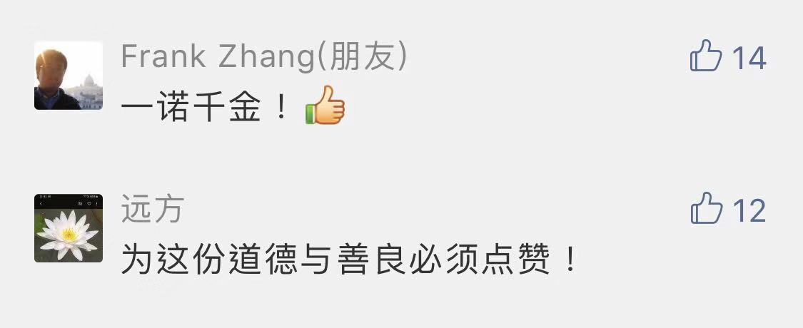 網(wǎng)友表示對(duì)雙方之間建立起來(lái)的誠(chéng)信與信任感動(dòng),紛紛點(diǎn)贊!