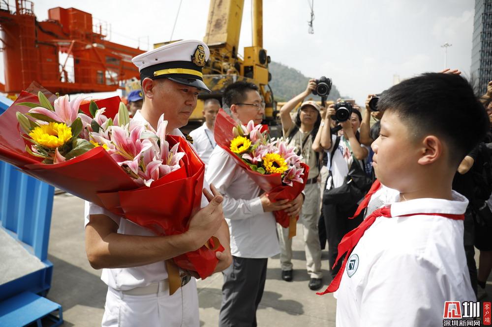 當(dāng)天下午,近百名市民、學(xué)生及各市直部門和中央駐深涉海部門代表看到“雪龍2”號(hào)船靠泊碼頭,發(fā)出熱烈的歡呼聲,他們揮舞著手中的紅旗熱烈歡迎“雪龍2”號(hào)科考船及國(guó)家第36次南極考察隊(duì)抵達(dá)深圳。當(dāng)船舶靠穩(wěn)并架設(shè)好舷梯后,深圳市政府副市長(zhǎng)、黨組成員黃敏等領(lǐng)導(dǎo)攜兩位少先隊(duì)員迎接考察隊(duì)代表,并獻(xiàn)花握手致意,表達(dá)誠(chéng)摯的歡迎和衷心的祝福。