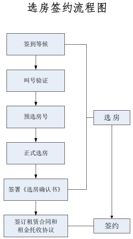 選房地點在深圳市福田區(qū)紅荔西路蓮花大廈東附樓三樓選房區(qū)。選房方式為合格家庭按照選房排位順序依次選擇對應配租面積標準的住房,對應房源選完即止。選房簽約流程如下: