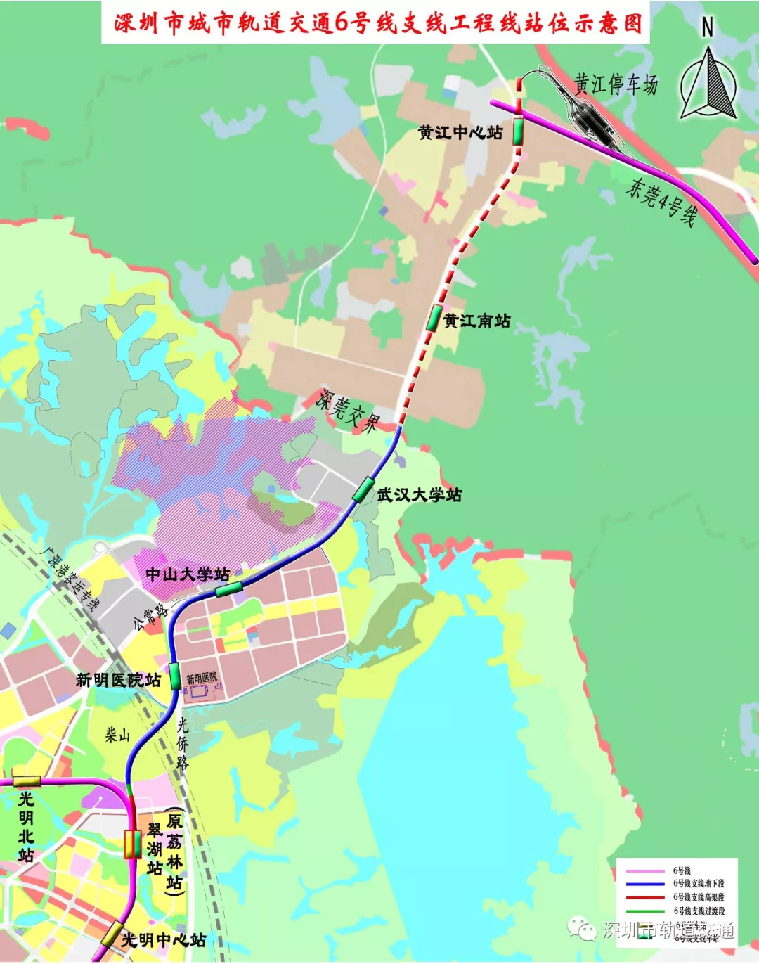 地鐵6號線支線位于深圳市光明區(qū),線路起點設置于6號線翠湖站(不含土建部分)東側,線路終點設置于公常路深莞邊界東莞黃江鎮(zhèn),共設3站4區(qū)間。其中翠湖站為6號線支線與6號線的換乘站。