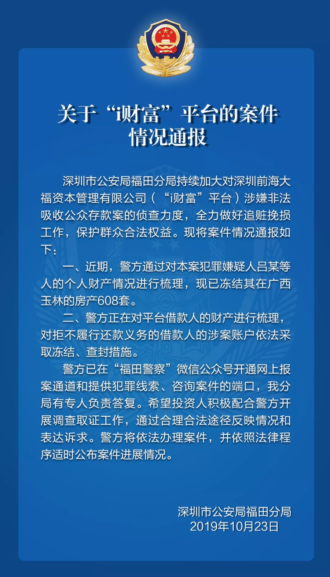 關(guān)于“i財(cái)富”平臺(tái)的案件情況通報(bào)
