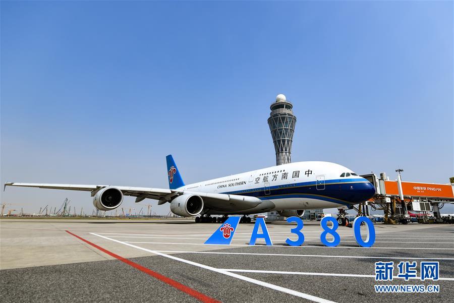 10月27日,南方航空空中客車A380客機(jī)??吭谏钲跈C(jī)場(chǎng)。當(dāng)日下午,由全球最大寬體客機(jī)——空中客車A380執(zhí)飛的南航CZ3153次航班由深圳起飛前往北京,標(biāo)志著這款“空中巨無霸”機(jī)型重返深圳機(jī)場(chǎng)。南航曾在2014年5月開始啟用A380執(zhí)飛京深航線,后因動(dòng)態(tài)運(yùn)力調(diào)配停飛。新華社記者毛思倩攝
