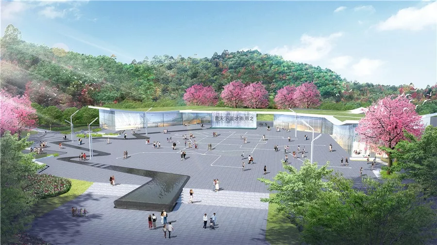 群賢廣場(chǎng)取名源于《蘭亭集序》中的“群賢畢至”,寓意匯聚天下賢能之才。廣場(chǎng)占地面積約5600平方米,主要由花崗巖鋪設(shè)而成。廣場(chǎng)作為人才綠道示范段的主題景點(diǎn),象征著深圳人才門戶。圍繞習(xí)近平總書(shū)記提出的“聚天下英才而用之”的核心人才觀,打造群賢廣場(chǎng)作為每年11月人才節(jié)日的活動(dòng)場(chǎng)地之一。借用《蘭亭集序》中“流觴曲水”的典故作為設(shè)計(jì)理念打造水景從廣場(chǎng)中彎曲而過(guò),同時(shí)采用簡(jiǎn)化的全國(guó)鐵路網(wǎng)鋪裝,寓意五湖四海、人才匯聚,歡迎全國(guó)乃至全世界的人才來(lái)深圳,為深圳發(fā)展添磚加瓦。