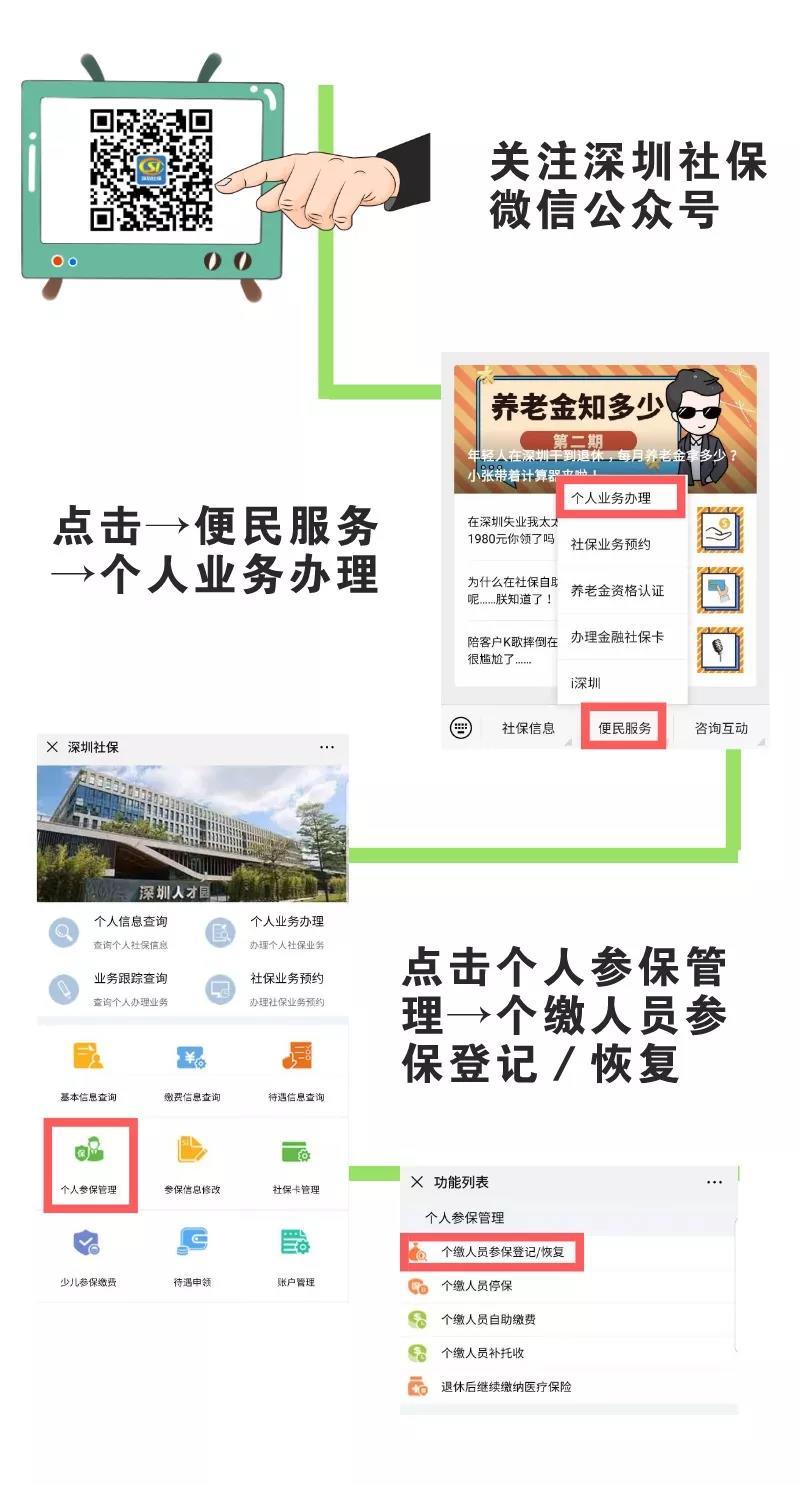 怎樣給自己參保繳費(fèi)?深戶靈活就業(yè)人員有以下幾種渠道為自己參保繳費(fèi):登錄深圳市社會(huì)保險(xiǎn)基金管理局官網(wǎng)(http://hrss.sz.gov.cn/szsi)上的個(gè)人網(wǎng)上服務(wù)系統(tǒng),自助辦理。關(guān)注“深圳社保”微信公眾號(hào),在微信上辦理。在社保自助終端機(jī)上辦理。前往社保機(jī)構(gòu)的辦事窗口辦理。