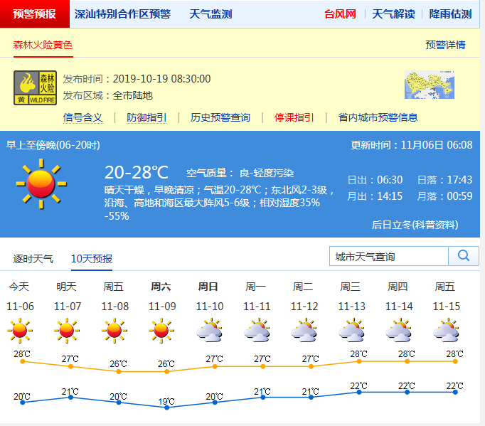 見(jiàn)圳客戶(hù)端·深圳新聞網(wǎng)2019年11月6日訊 近幾日,深圳天氣早晚清涼,持續(xù)干燥。據(jù)“深圳天氣”官方微博消息,今天(11月6日),深圳晴天干燥;氣溫20-28℃;東北風(fēng)2-3級(jí);相對(duì)濕度35%-55%。
