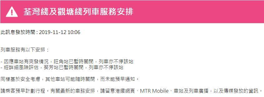 港鐵官網(wǎng)今早陸續(xù)發(fā)布其它線路列車服務(wù)調(diào)整信息,截至目前各線路情況如下: