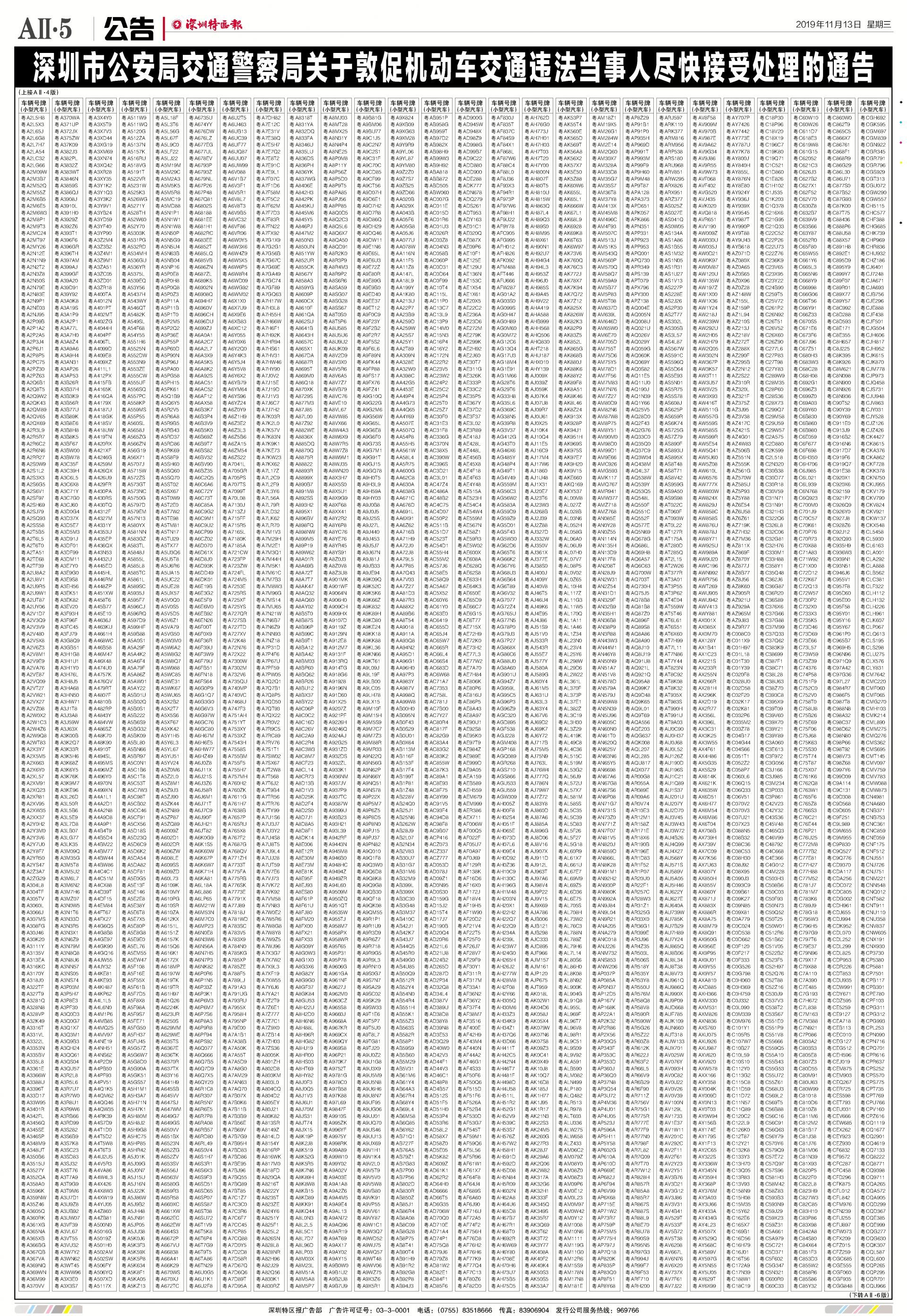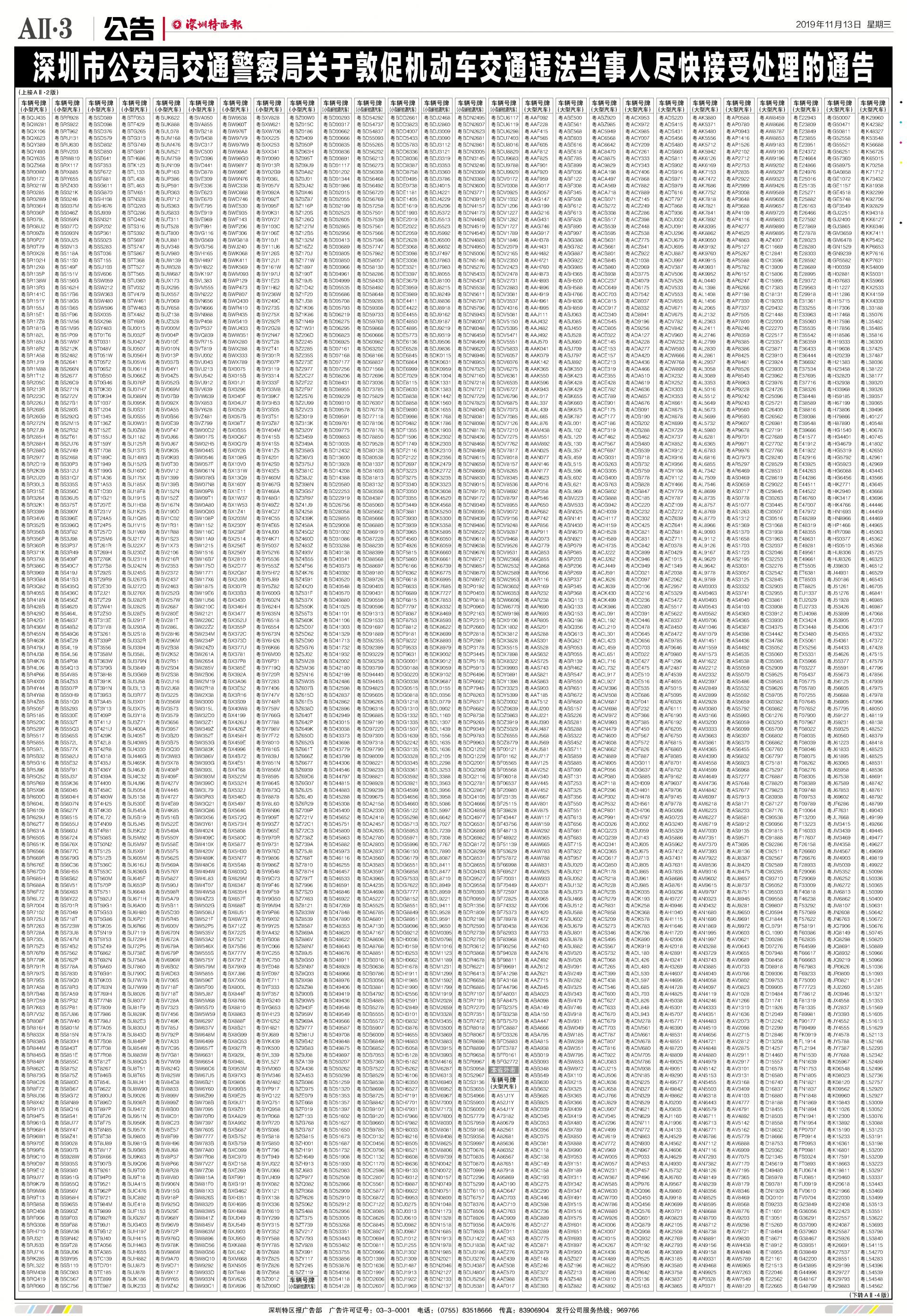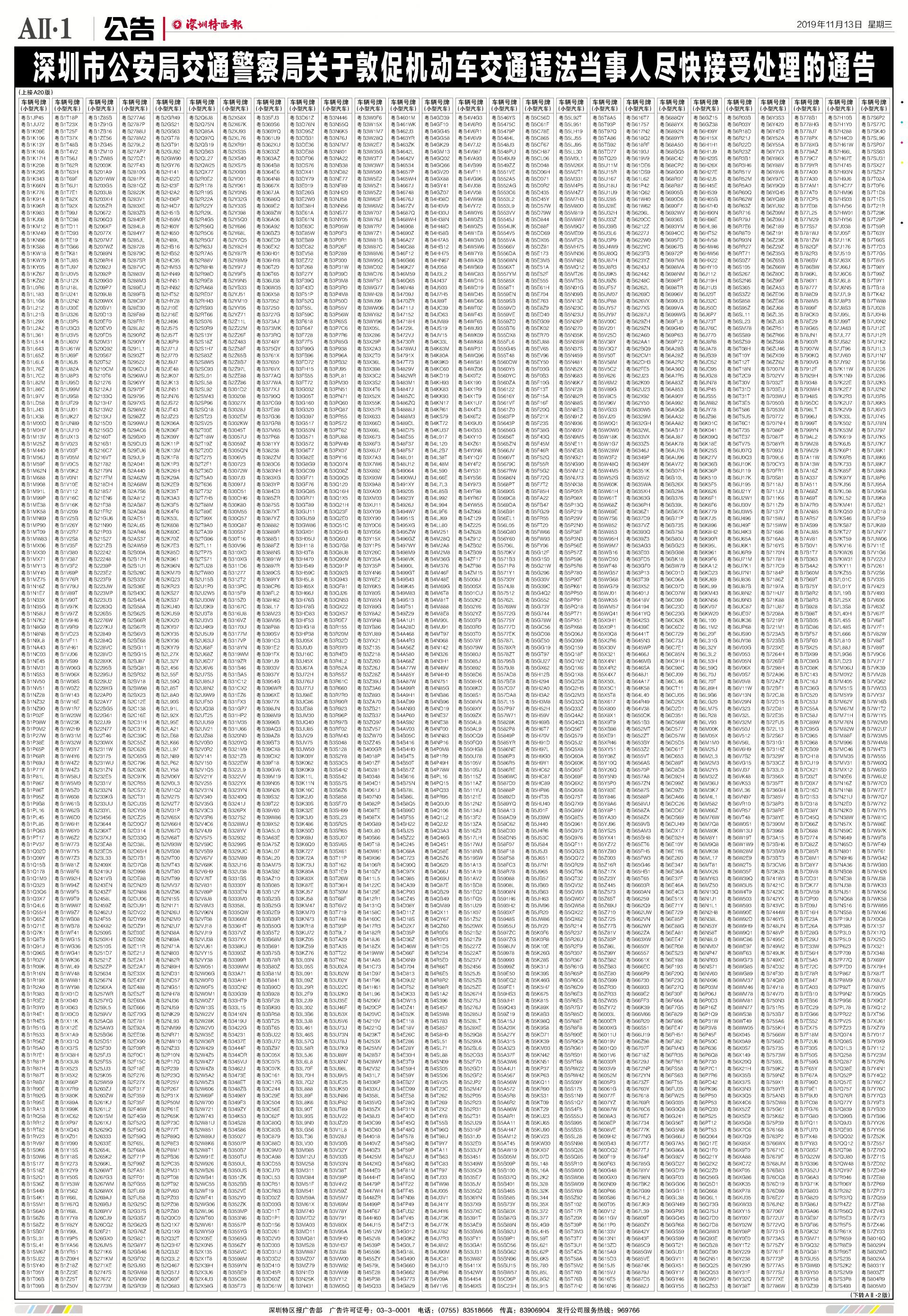 今年7月至10月初,全市機動車被“電子警察”抓拍交通違法行為1342781宗,深圳交警通過多種方式進(jìn)行交通違法行為告知,但截止至目前仍有部分機動車的非現(xiàn)場交通違法未及時處理。