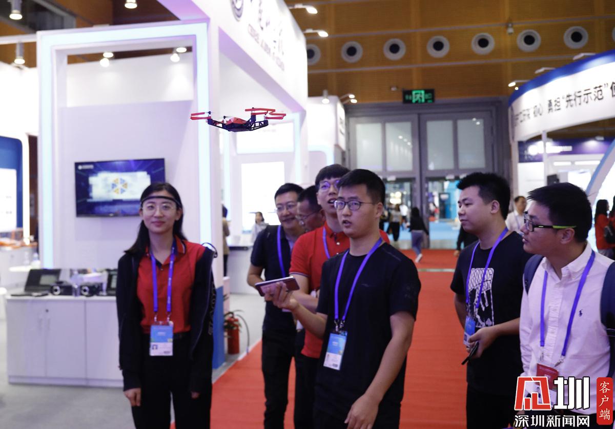 一位展區(qū)工作人員正在操控?zé)o人機(jī)。