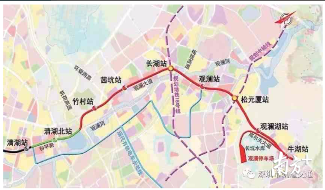 線路共設車站8座,分別為:清湖北站、竹村站、茜坑站、長湖站、觀瀾站、松元廈站、觀瀾湖站、牛湖站,其中清湖北站為高架站。