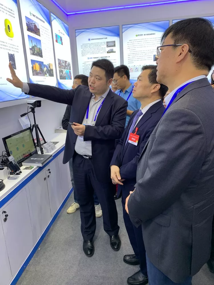 新疆維吾爾自治區(qū)政府副秘書長許龍章、科技廳廳長張小雷、科技廳副廳長劉智敏參觀新譯展區(qū)