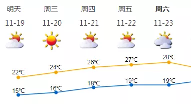未來幾天天氣提示:本周前中期冷空氣影響氣溫明顯下降:受新一股冷空氣影響,周一午后至傍晚北風(fēng)開始加大,最大陣風(fēng)7-8級,夜間至周二氣溫明顯下降,周二早晨最低氣溫降至14-15℃;周三日白天風(fēng)力減弱;周四至周末晴天到多云,氣溫回升。港口碼頭及海上活動注意防風(fēng);